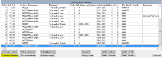 Klicken Sie nun den gewünschten Auftrag an (blau hinterlegt) und gehen Sie auf Positionen bearbeiten.