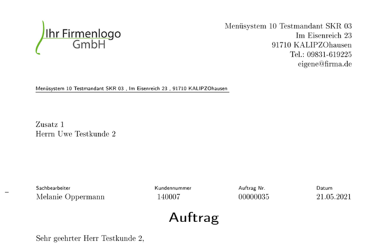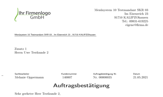 Die Ausgabe der Auftragsbestätigung folgt, wenn Sie nun den Button Angebot/Auftragsbest. drücken.