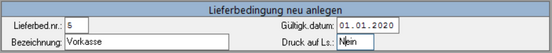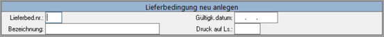 Geben Sie die Lieferbed.Nr. ein, das Gültigkeitsdatum, die Bezeichnung sowie, ob der Druck auf dem Lieferschein erfolgen soll oder nicht (Ja/Nein).