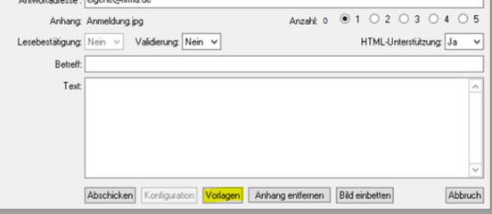 Die Felder Betreff und Text können mit einer Vorlage gefüllt werden. Wählen Sie dazu den Button Vorlagen.