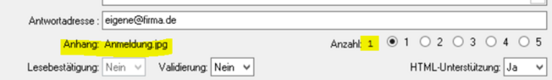 Mithilfe der HTML-Unterstützung können Sie auch Bilder (z.B. Logos) im Mailtext einfügen. Dazu wählen Sie „Ja“ aus und geben Sie im Text den entsprechenden HTML-Code ein.