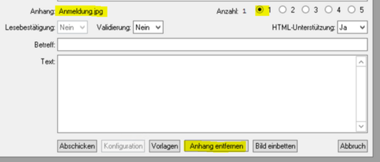 Möchten Sie nun einen Anhang wieder entfernen, so aktivieren Sie die betreffende Ziffer.