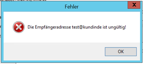 Eine Validierung der gewählten E-Mail-Adressen können Sie hier mit einem JA belegen. Dann erfolgt eine Fehlermeldung, wenn eine Adresse einen grundlegenden Fehler beinhaltet. Anschließend haben Sie die Möglichkeit, diese zu korrigieren.