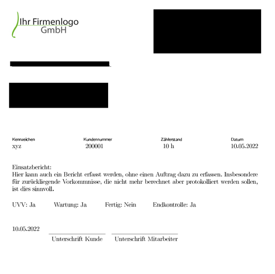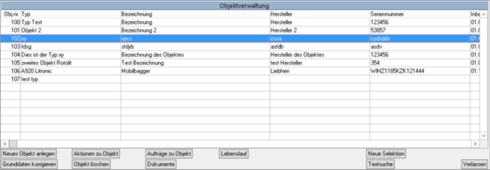 Sollten Sie nachträglich einen Einsatzbericht benötigen, so rufen Sie Betriebsverwaltung/Stammdatenverwaltung/Objekte auf.