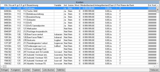Um den Überblick im Kontenrahmen zu gewährleisten, wird bei der Neuanlage einer Firma ein reduzierter Kontenrahmen mit den üblicherweise benötigten Konten durch kalipzo eingespielt.