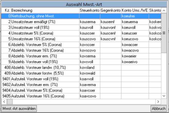 Das Mehrwertsteuerkennzeichen wird nur angesteuert, wenn ein Aufwandskonto als Soll-Konto oder ein Erlöskonto als Habenkonto gewählt wurde. Allerdings ist beides nur in Ausnahmefällen der Fall.
