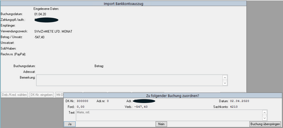 Bei Nein, wird die Buchung erzeugt aber nicht zugeordnet.