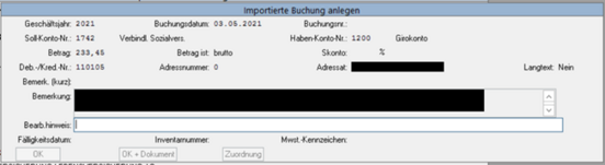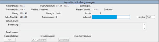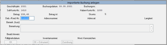 Drücken Sie Enter. Sie gelangen nun in die importierte Buchung.