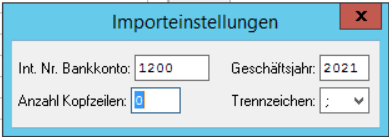 Wählen Sie die Int. Nr. Bankkonto, das Geschäftsjahr, die Anzahl Kopfzeilen sowie das Trennzeichen aus.