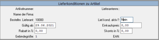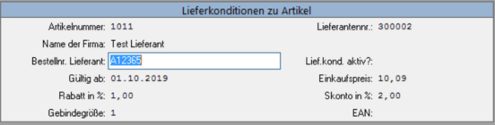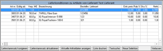 Sie sehen hier alle Lieferkonditionen, die bei dem gewählten Lieferanten hinterlegt sind.