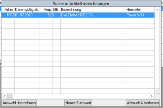 Nun können Sie die Auswahl übernehmen oder ein Neues Suchwort eingeben.