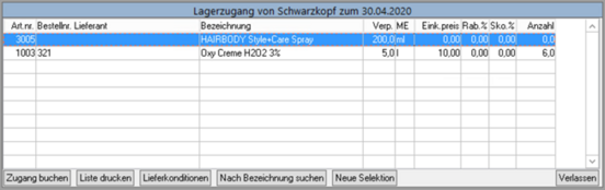 Sie können Sie eine Liste der Lagerzugänge für einen Zeitraum ausgeben lassen.