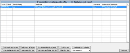 Die Daten zum markierten (blau hinterlegten) Dokument können mit dem Button