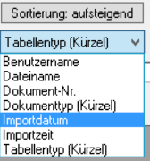 Mittels des alternierenden Buttons Sortierung: aufsteigend bzw. Sortierung: absteigend können Sie nach den im Feld darunter wählbaren Feldern sortieren.