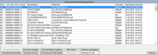 Sie erhalten eine Übersicht aller Dokumente, die im DMS gespeichert sind.