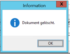 Wenn Sie diese mit Ja beantworten, erfolgt anschließend die Information, dass das Dokument gelöscht wurde.