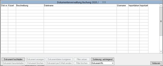 Bei OK + Dokument wird die Buchung gespeichert und Sie können direkt ein Dokument zuordnen.