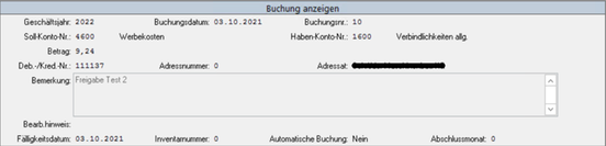 Mit Buchung anzeigen können Sie die betreffende Buchung ansehen.