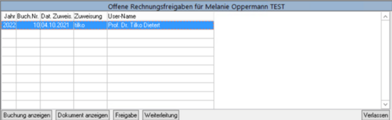 ACHTUNG! Hierbei werden nur die zur Freigabe durch die angemeldete Person hinterlegte Buchungen angezeigt.