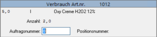 Falls dieser Verbrauch für einen speziellen Auftrag ist, können Sie diesen in derAuftragsnummer erfassen. Für eine bessere Nachkalkulation können Sie den Verbrauch sogar einer speziellen Positionsnummer des Auftrages zuordnen.
