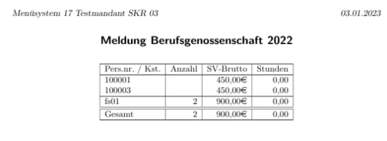 Um die Meldedaten für die Berufsgenossenschaft auszugeben, rufen Sie Personalverwaltung/Jährl. Auswertungen/Berufsgenossenschaft auf.