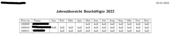 Rufen Sie Personalverwaltung/Jährl. Auswertungen/Jahresübers. Beschäft. auf.