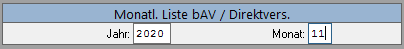Gehen Sie unter Personalverwaltung/Monatl. Auswertungen/bAV, Direktversich..