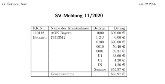 Hierbei werden die Lohnabrechnungen aller Mitarbeiter pro Krankenkasse summiert.