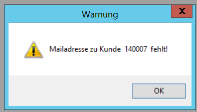 Zum ordnungsgemäßen Ablauf ist es unabdinglich, dass alle E-Mail-Adressen der betreffenden Kunden korrekt gepflegt sind.