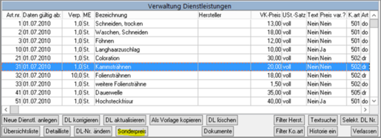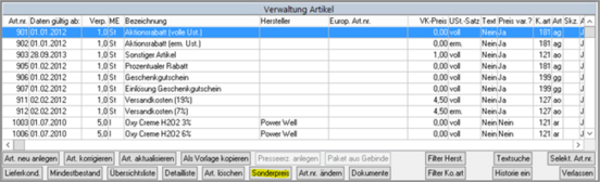Sollte für einzelne Artikel oder Dienstleistungen ein Sonderpreis gezogen werden, muss dieser angelegt werden.