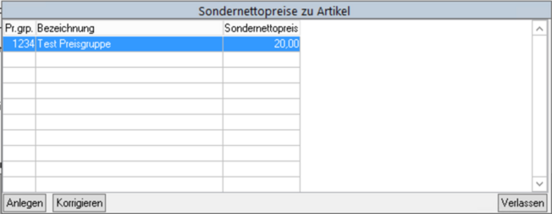 Anschließend ist der Sondernettopreis zu diesem Artikel gespeichert.