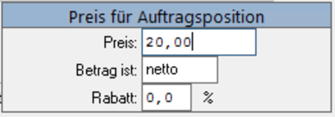 Wählen Sie nun in der Auftragsbearbeitungen einen der Preisgruppe zugeordneten Kunden, so erscheint dieser Sonderpreis in der Auftragsposition des Artikels.