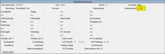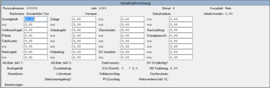 Anschließend starten Sie wie gewohnt die Gehaltsabrechnung. Wenn Sie hier einen Personalstammdatensatz aufrufen, der einen Stundenlohn hinterlegt hat, gelangen Sie in die Angabe der Arbeitsstunden.