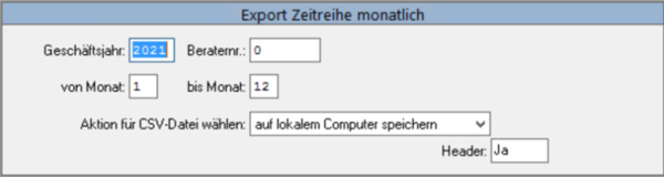 Mit dem Header erhält die DATEV-Datei noch eine separate Überschriftenzeile, in der die Auswahldaten erkennbar sind. Wählen Sie hierfür im Feld Header ein JA. Fragen Sie Ihren Steuerberater, welche Form er bevorzugt.