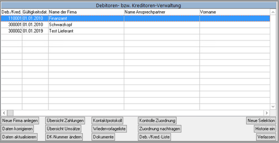 Im Menü Buchhaltung/ Verw. Debitoren und Kreditoren/Nach Deb. o. Kred.-Nummer können Sie auch einen neuen Lieferanten anlegen.