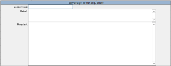 Erfassen Sie im Betreff und im Haupttext den Text, den Sie als Vorlage beim Erstellen eines Briefes verwenden möchten. Diese Textvorlage kann im Brief jederzeit noch verändert bzw. ergänzt werden.