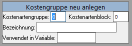 Vergeben Sie die Nummer der Kostenartengruppe. Diese muss einem Kostenartenblock zugeordnet werden.