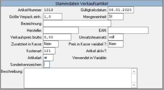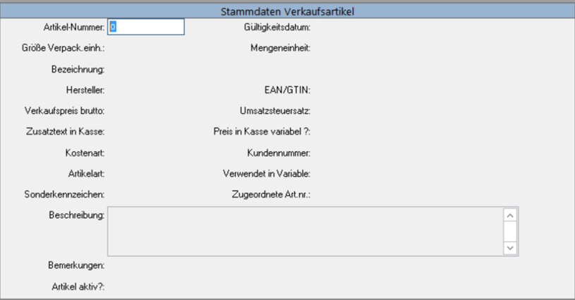 Vergeben Sie nun eine Artikelnummer (bestenfalls haben Sie sich vorher vergewissert, dass die Artikelnummer frei ist). Drücken Sie ENTER und es werden einige Felder vorbelegt.