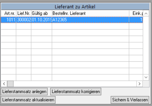 Sie haben hier die Möglichkeit, einen weiteren Lieferstammsatz zu dem Artikel anzulegen.