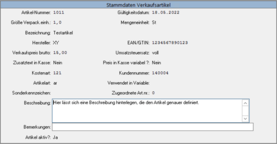 In der Beschreibung haben Sie die Möglichkeit, eine detailliertere Erklärung des Artikels zu platzieren.