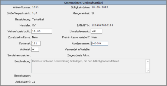 Standardmäßig sind die Preise nicht variabel. Manchmal wird dies jedoch benötigt, dann kann dies hier mit einem „JA“ eingestellt werden. Dies bezieht sich nur auf die Kassenanmeldung.