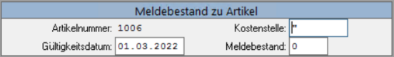 Mittels Gültigkeitsdatum legen Sie fest, ab wann der Meldebestand für dieses Lager gelten soll. Darüber lassen sich beispielsweise Saisonartikel gut steuern, die in den Sommermonaten mehr frequentiert werden als in den Wintermonaten.