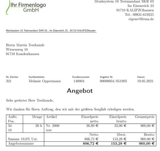 Im Angebotsstatus können Sie noch alle Daten ändern, dies gilt sogar für die Kundennummer.