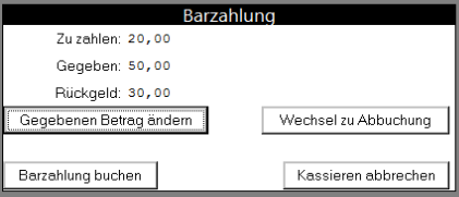 Den gegebenen Betrag ändern kann man hier auch noch, falls bspw. noch Kleingeld nachgelegt wird.