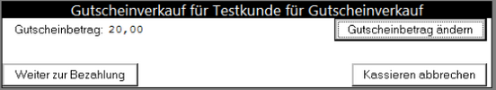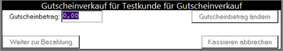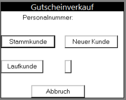 Wenn die Neuanlage des Kunden erledigt ist, öffnet sich das eigentliche Fenster für den Gutscheinverkauf.