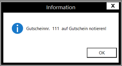 Damit die Zahlungen mit diesem Gutschein auch jederzeit nachvollzogen werden können, ist es extrem wichtig, die Gutscheinnummer auf dem ausgehändigten Gutschein zu notieren. Denn nur so ist es möglich, die späteren Zahlungen (auch Teilzahlungen sind mit Gutscheinen möglich) damit zu verrechnen.