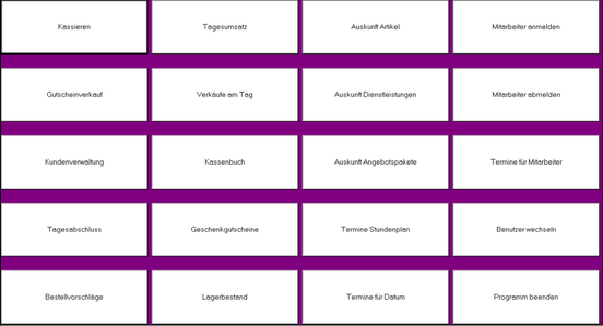 Der Gutscheinverkauf kann sowohl aus dem Kassenmenü (Buttons) als auch aus dem Usermenü heraus gestartet werden: